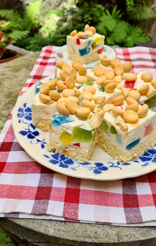 Pyszne letnie ciasto. Spód migdałowy, dość ciężki z przyjemnie chrupiącymi migdałami. Lekki, piankowy krem z dodatkiem mleka w proszku. Duża ilość truskawek w galaretce. Porcja na dużą blachę, wiadomo bo ciasta z truskawkami są tylko raz w roku. Wystarczy nawet na cały weekend.