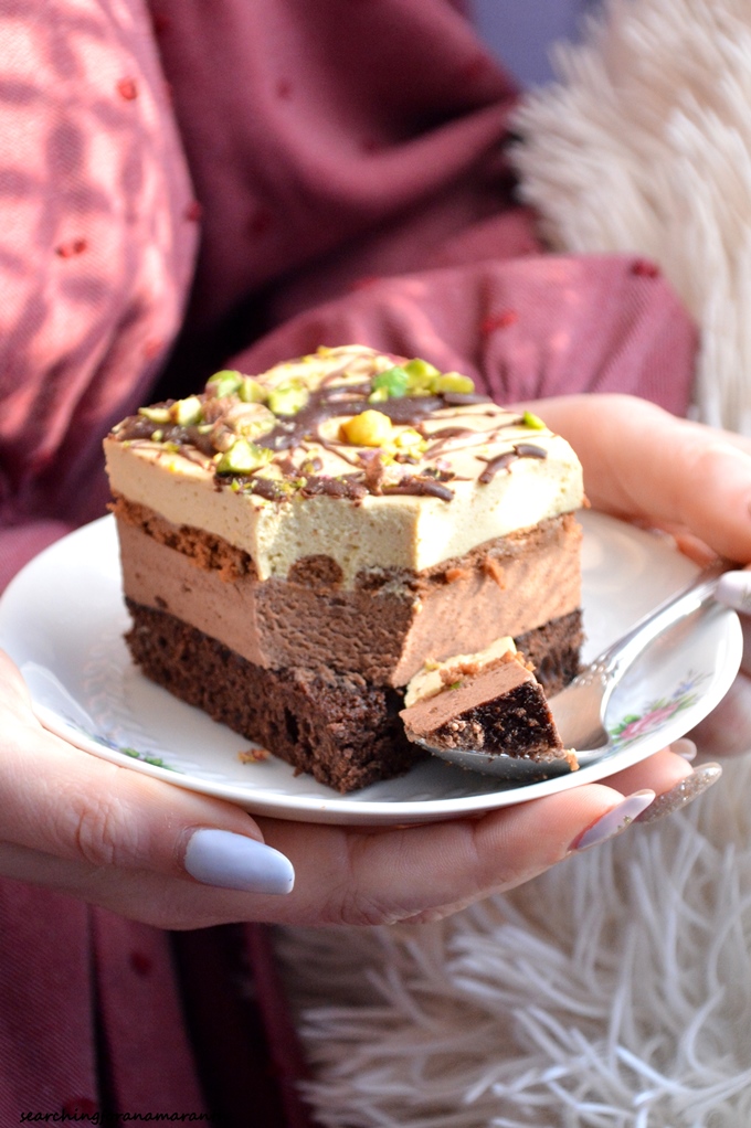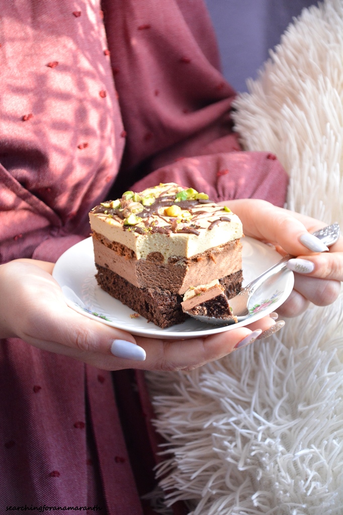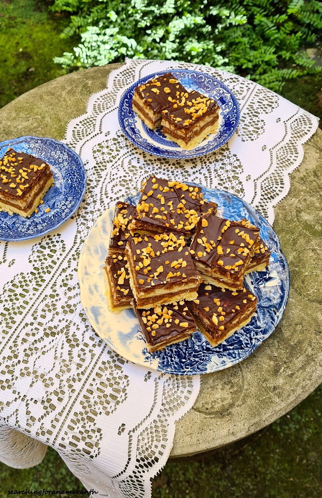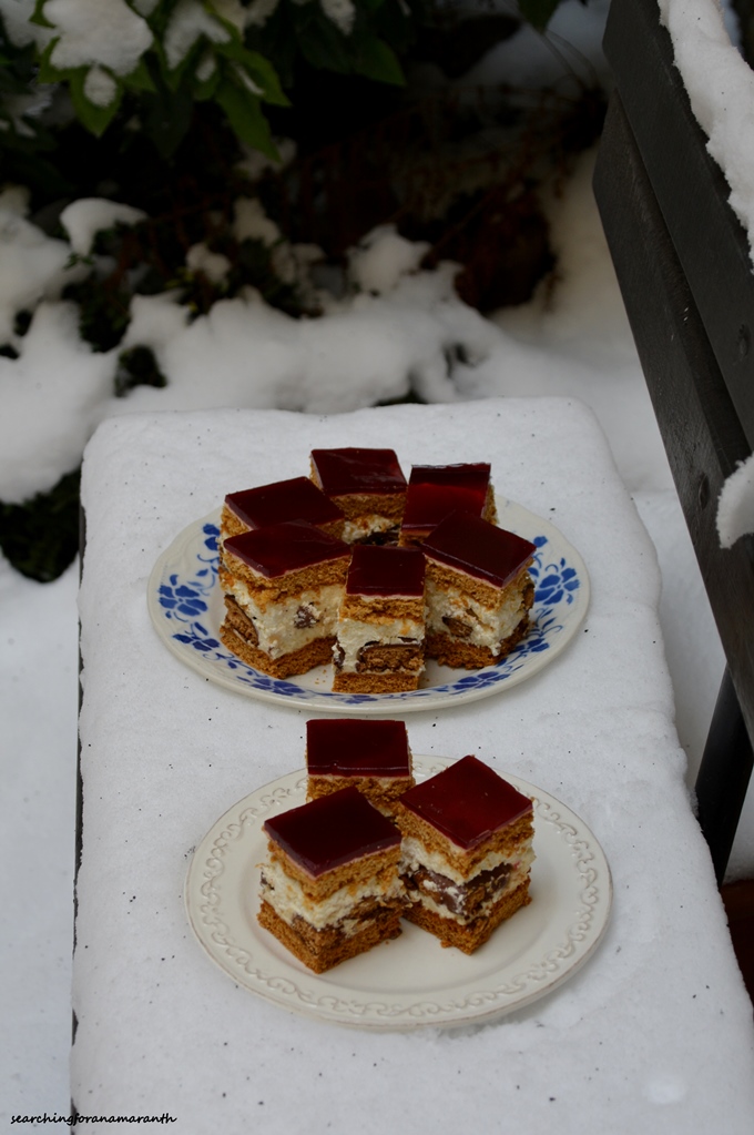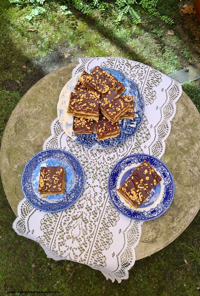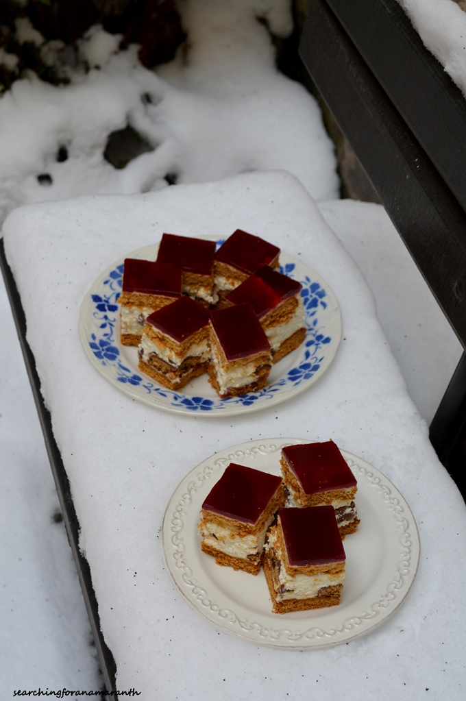 Formę o wymiarach ok 22×34 cm wyłożyć papierem do pieczenia. 2/3 ciasta wylepić na spód, rozłożyć borówki wymieszane z mąką ziemniaczaną. Na wierzchu wyłożyć pozostałe ciasto (najlepiej odrywać i spłaszczać kawałki ciasta, maczając ręce w mące). Piec w temperaturze 180stopni przez 45-50 minut lub do zarumienienia. Po wystudzeniu posypać cukrem pudrem. Podawać z lodami i świeżymi borówkami.