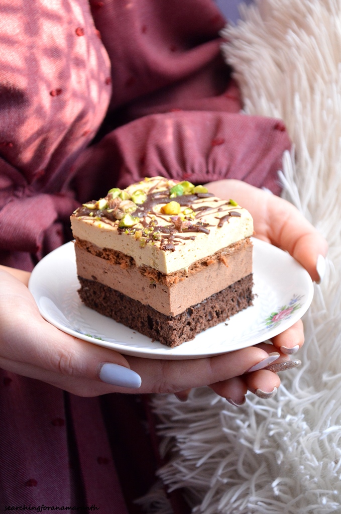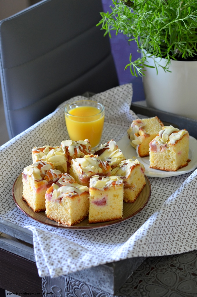 Mąkę połączyć z proszkiem do pieczenia i cukrami. Dodać do niej jajka, mleko, masło i przy pomocy miksera połączyć składniki w jednolite ciasto. Ciasto będzie dość miękkie, ale nie należy dodawać więcej mąki, aby po upieczeniu nie było twarde.