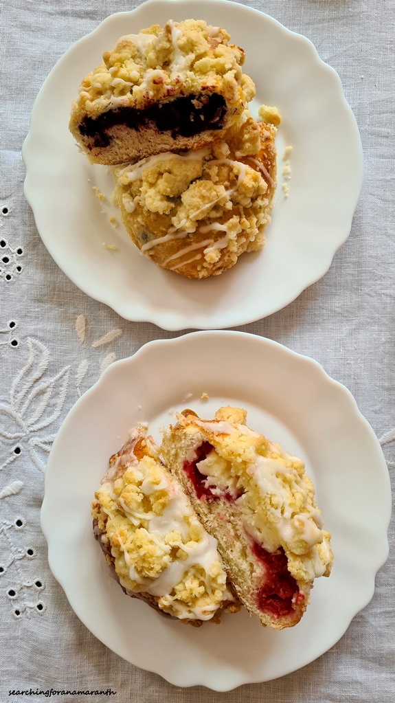 W tym roku zrobiłam dużą blachę ciasta drożdżowego z jagodami zamiast jagodzianek. Do ciasta dodałam sporo serka mascarpone dzięki czemu ciasto miała zupełnie inną strukturę, było miękkie, wilgotne i puszyste. Jagód nie żałowałam, bo zużyłam ich aż kilogram, ale jeśli nie macie tak dużo to można dać mniej. Do tego maślana kruszonka i naprawdę lepszego ciasta z jagodami nie znajdziecie.
